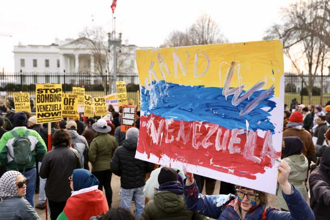 Protesters rally outside the White House Saturday, Jan. 3, 2026, in Washington, after the U.S. captured Venezuelan President Nicolás Maduro and his wife in a military operation.